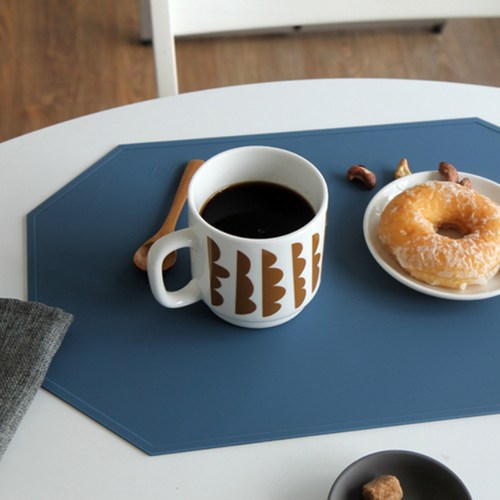 에이드엘 옥타곤 실리콘 테이블매트, 터키블루, 가로 430mm x 세로 290mm