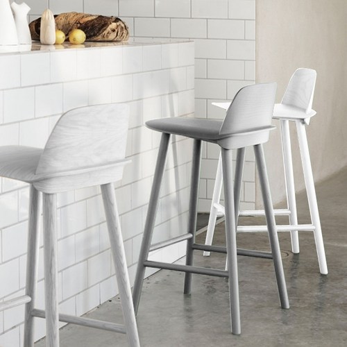 룸앤홈 헬싱키 등받이바 스툴 PU 홈바의자, 화이트그레이