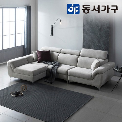 [동서가구] 슈어 생활방수 아쿠아텍스 클린 4인용 패브릭소파+스툴, 색상:웜그레이