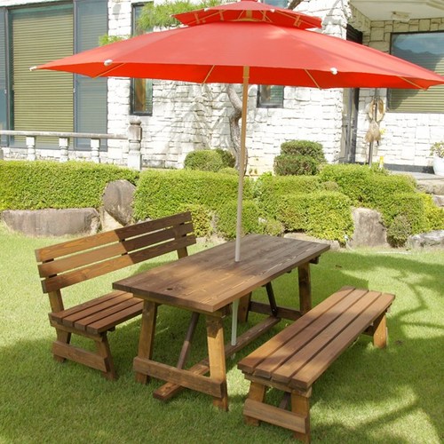 엉클트리 분리형 야외 테이블 원목 야외용 탁자 세트 정원 마당 파라솔 별매, (등평)4인용 한쪽 등받이(무도색)