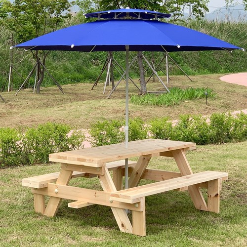 착한테이블 전문목수 일체형 야외용 탁자 세트 야외평상 파라솔 야외테이블, 4인일체형 최고급원목테이블 무도색