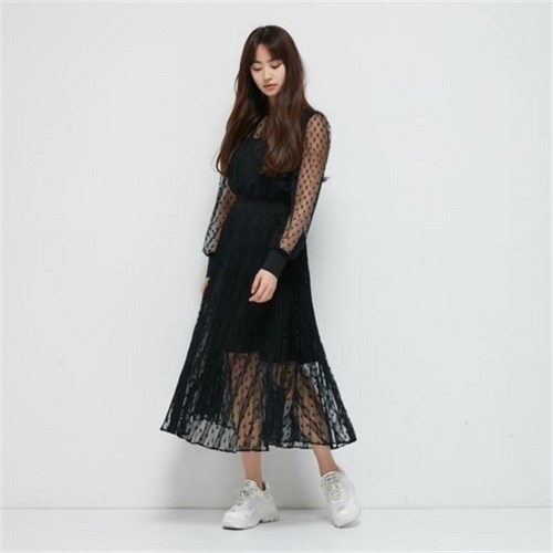 에고이스트 도트 레이스 롱 원피스 EK2WO361