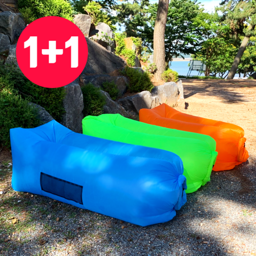 리얼살롱 1+1 포켓형 에어 쇼파 베드 캠핑 매트 에어매트, 일반형(형광그린+형광오렌지)