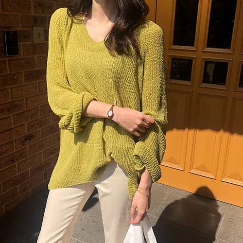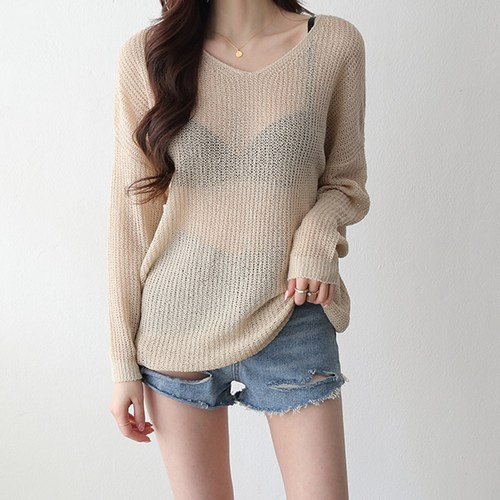 제니트 여성용 브이넥 루즈핏 무빗가오리 시스루니트 N1205