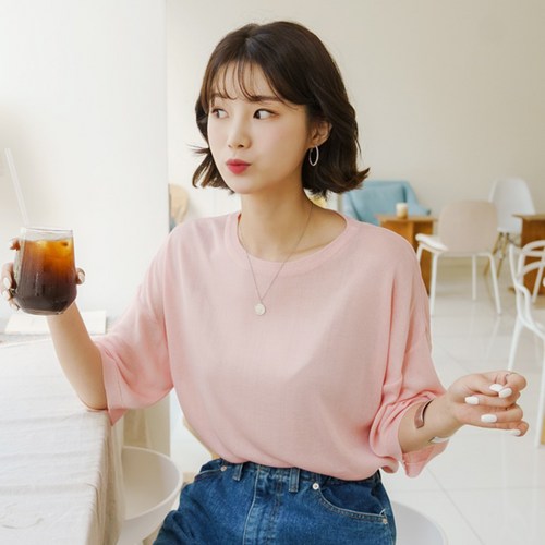 빼빼 여성용 레이온 R 니트 5부 티셔츠