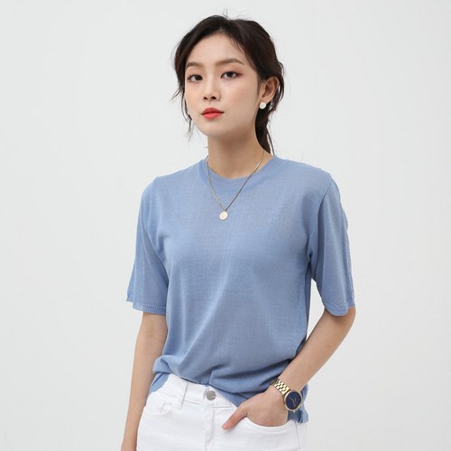 아모르데이 여성용 드온 썸머 라운드 반팔 니트