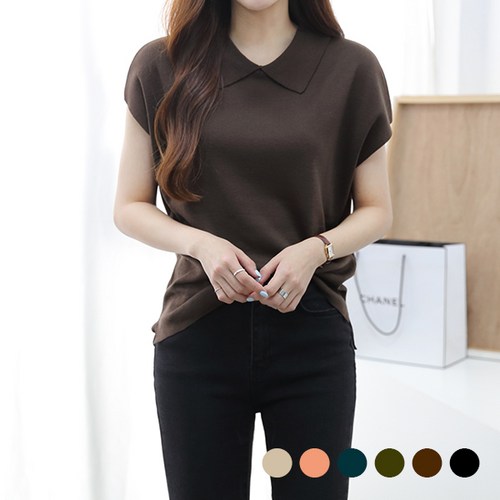 제니트 여성 여름 가을 간절기 반팔 카라넥 니트