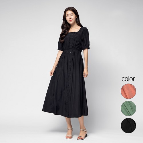 캐럿 여성 프런트 버튼 셔링 드레스