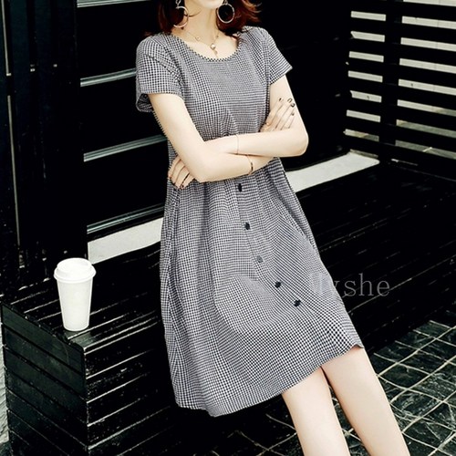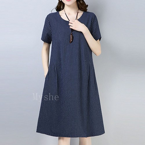 Myshe 여름 40대 중년여성 엄마 빅사이즈 반팔 원피스 BRSwu7AN59ts01