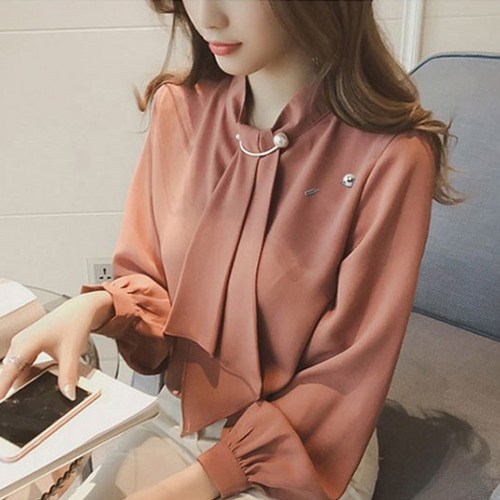 나바바 NB274 여성 브이넥 봄 가을 긴소매 쉬폰 블라우스