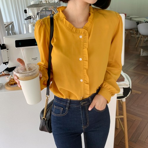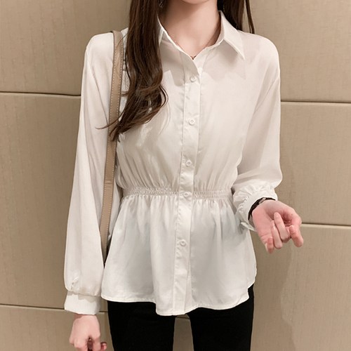 빼빼 여성용 프릴셔링 긴팔 블라우스
