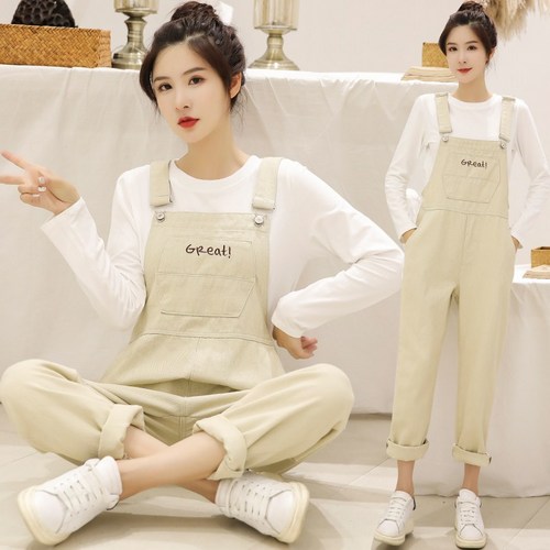 여성 점프수트 레터링 심플 오버롤 캐주얼 멜빵 바지