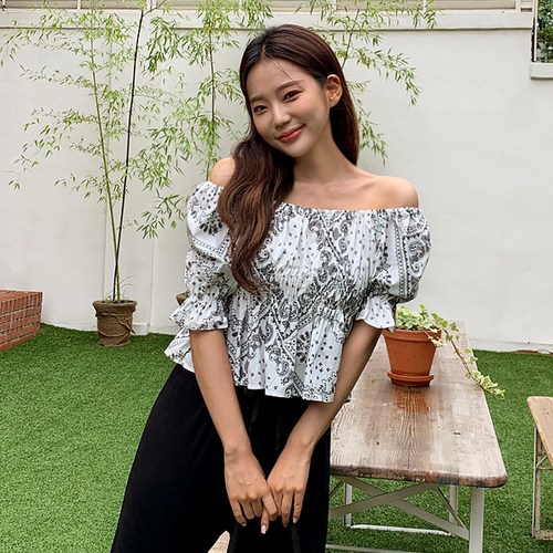 공블리 오프 숄더 플라워 블라우스 CSB1108