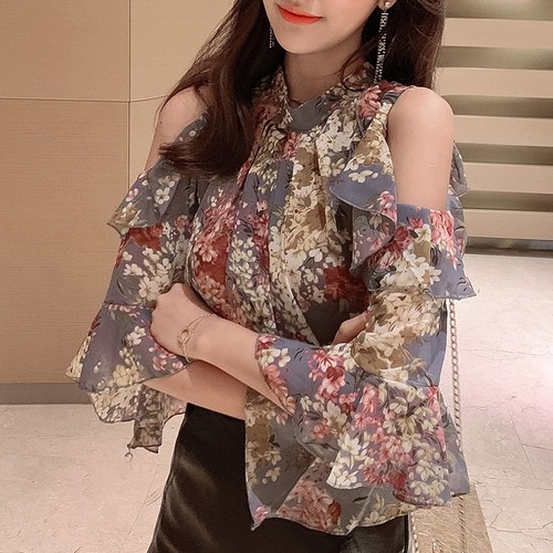 블로썸월드 비밀의화원 숄더 오픈 쉬폰 블라우스