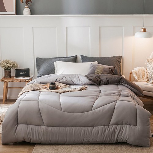 이브자리 극세사 먼지없는 차렵 이불 토퍼 겨울 손님 호텔 펜션 구름 사계절 수면 두꺼운 양면 이부자리, 그레이