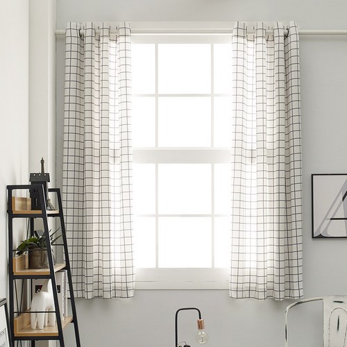 더자리 아일렛 DTP 체크 암막커튼, 화이트