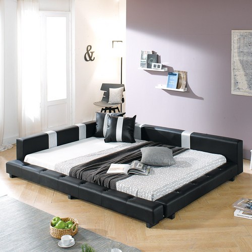 젠티스 저상형 사각스퀘어 가죽침대 세트, 블랙(프레임 +참숯콤포트매트)