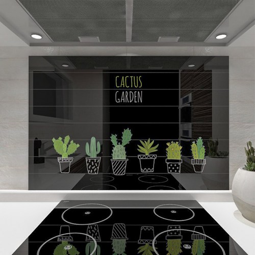 웰룸 주방아트보드 선인장정원1 블랙, 1개