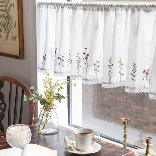 우리앤데코 프랑스 꽃자수 레이스 주방커튼, 화이트