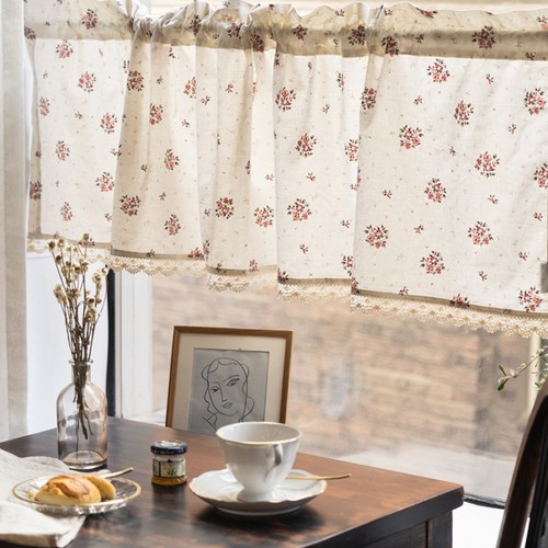 우리앤데코 프랑스 꽃자수 레이스 주방커튼, 화이트