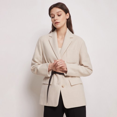 지컷 여성용 그림 벨티드 울 블랜드 재킷 7250410702