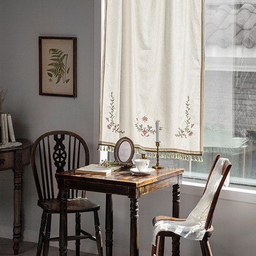 데코뷰 에스닉 버드 자수 가리개 커튼, 베이지 + 네이비 + 그린 + 레드