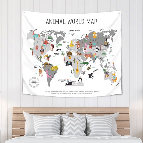 상상후 초대형 북유럽 패브릭포스터 가림막 가리개 150×130, 45_세계지도 애니멀