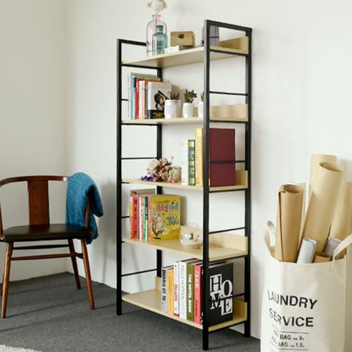 소프시스 스택 5단 책장, 티크판넬 + 블랙프레임