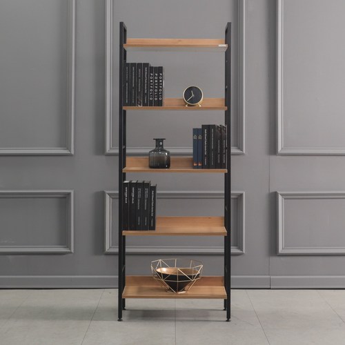 소프시스 스택 5단 책장, 티크판넬 + 블랙프레임