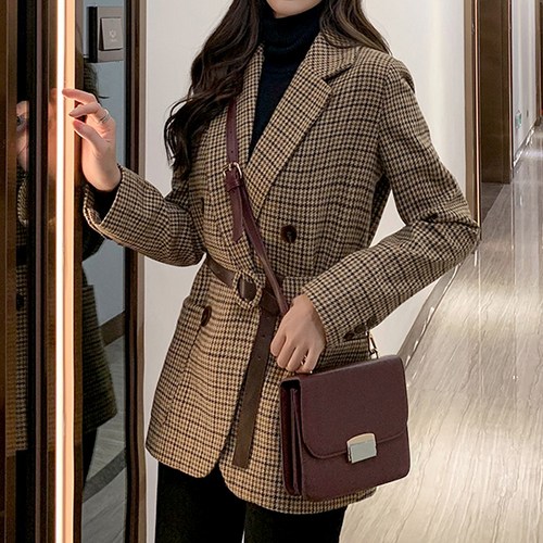 바닐라 가을 겨울 일본풍 작은키 모직체크 자켓 점퍼 더블버튼 정장 자켓