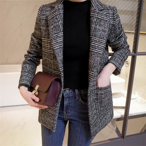 러블리트 SEV9WVS9 여성 봄 가을 복고 체크 모직 자켓