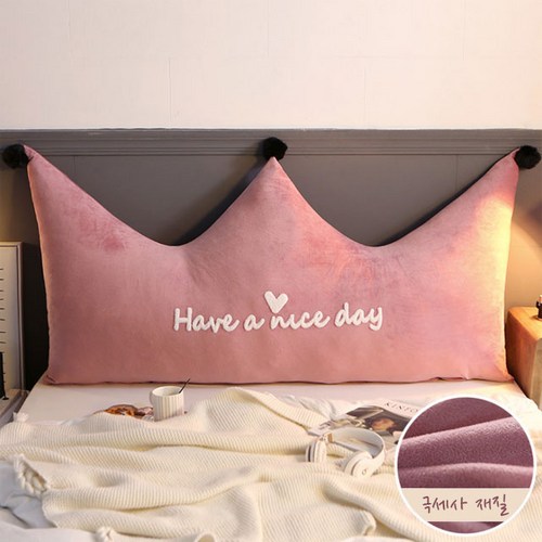 픽차 왕관 침대 헤드 쿠션 등받이 대형, 인디언핑크(검정색 방울)