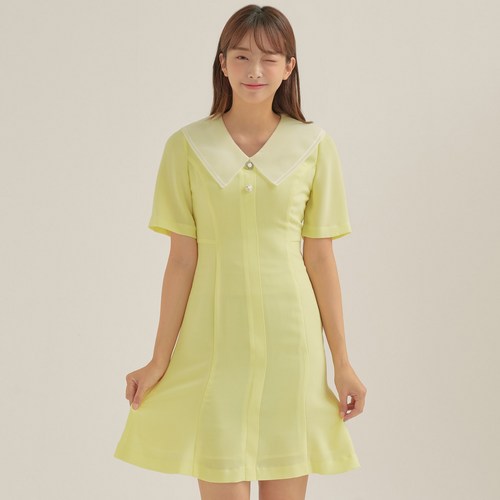 여성 요꼬 배색 카라 원피스-JBRG6144D0B