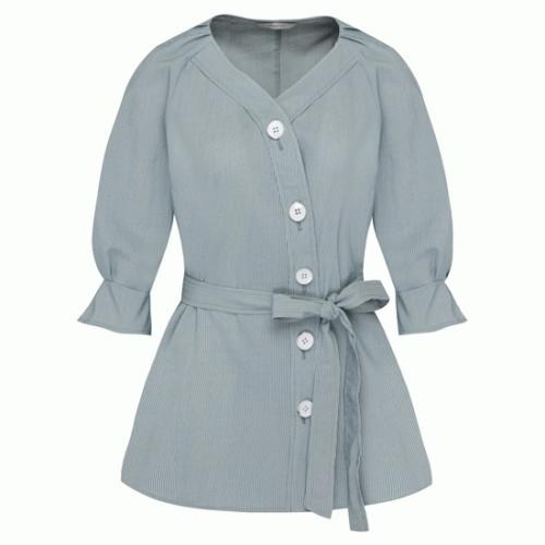 [엔터식스]케네스레이디 브이넥 슬림 벨트 블라우스EWBLJH0500