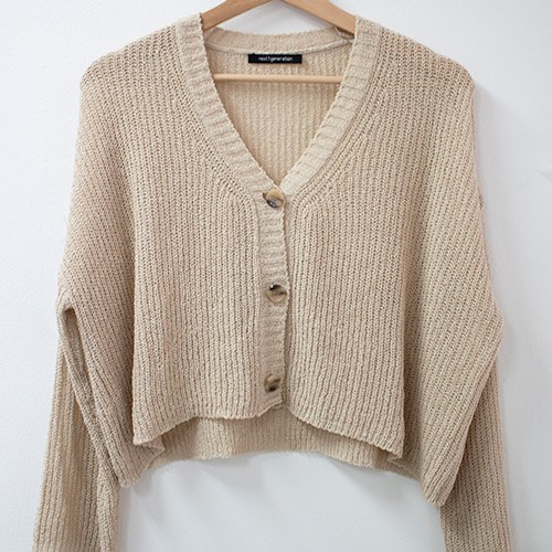 넥스트세븐지 여성용 루즈핏 내추럴 브이넥 긴팔 크롭 골지 가디건