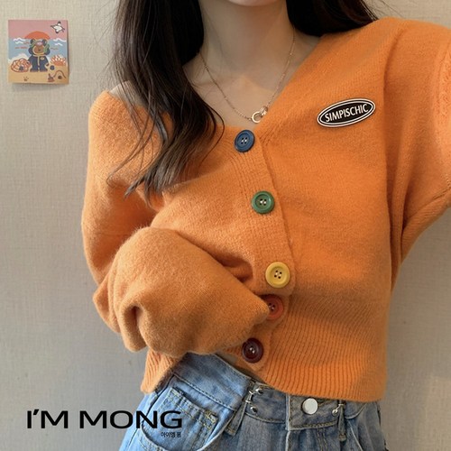 아이엠몽 여성 도톰한 크롭 숏 긴팔 니트가디건 데일리룩(BB017SE)_심피스