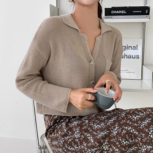 우리지금 V넥크롭가디건