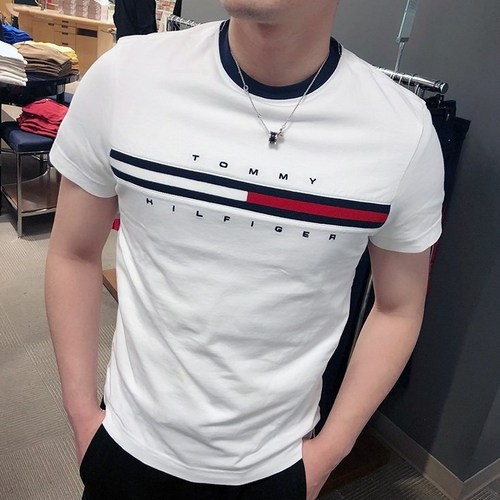 타미힐피거 남성용 라운드넥 반팔티셔츠