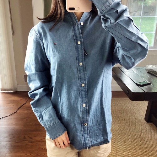 타미힐피거 남녀공용 스몰로고 중청 긴팔셔츠