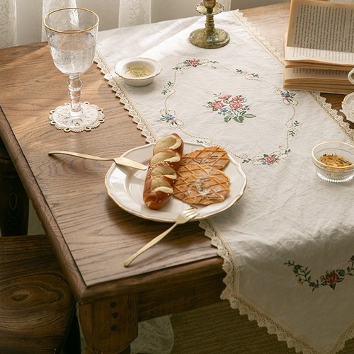 레트로 마리앙 자수 테이블 러너, 없음, 4인