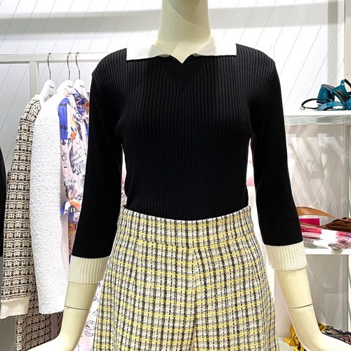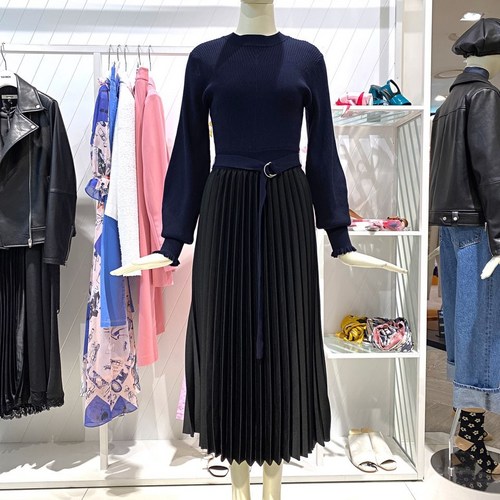 티렌 니트 배색 플리츠 원피스 L201PWO201