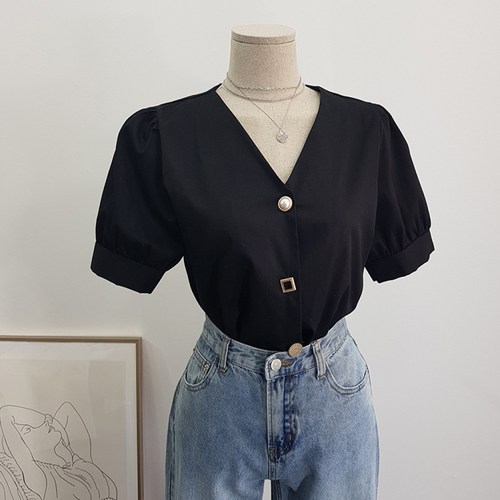 허니제이 / 쥬얼리 퍼프소매 반팔 보석 블라우스(3colors)