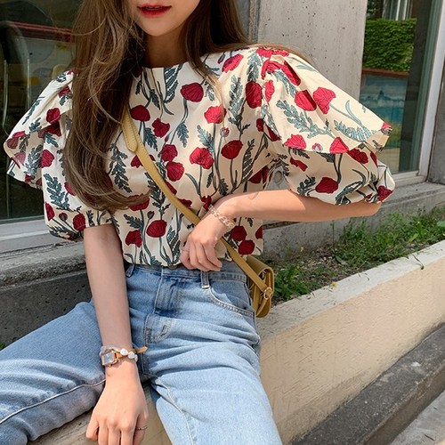 체리빌레 언제나페미닌 퍼프꽃블라우스