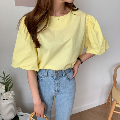 (OH) 패션마켓6 블라우스 코튼블라우스 퍼프블라우스 반팔