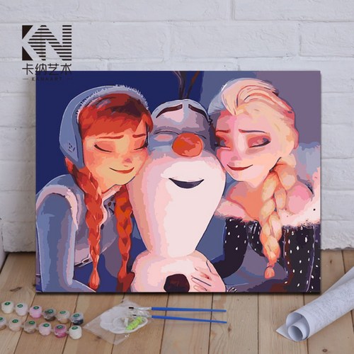 디즈니유화그리기 겨울왕국 세트 DIY명화그리기 캔버스페인팅 그림 포스터, 40×50 + A