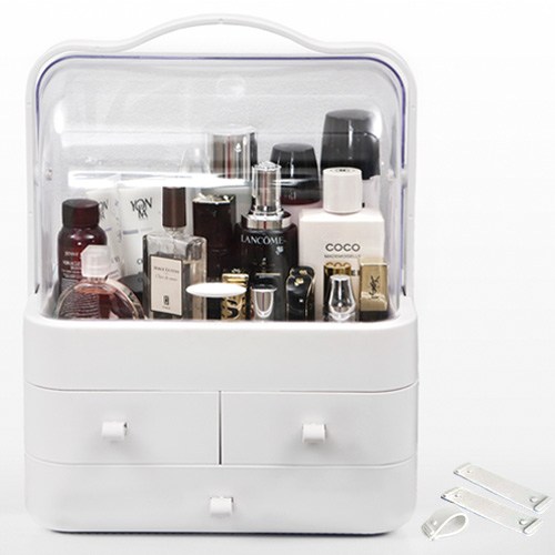 알뜨리 모던 화장품 정리함 커버형 대형 화이트 + 교체용 손잡이 3개 색상랜덤, 1세트