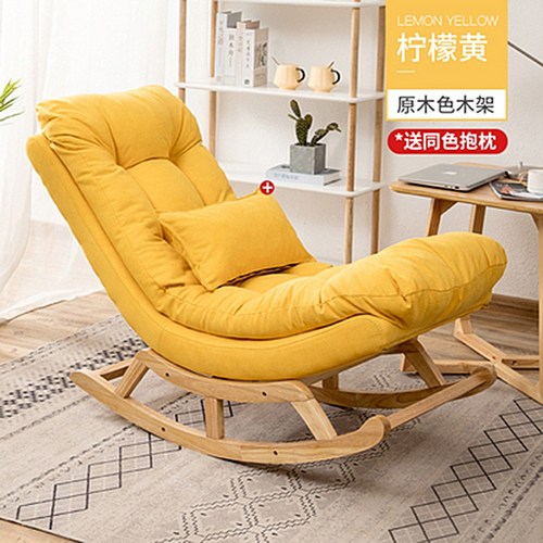 북유럽 원목 안락 흔들 의자 1인용 거실 흔들의자, 레몬 옐로우 흔들 의자