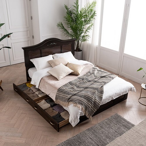 [삼익가구]리몬 아이보리 서랍형 도장 침대(65T 유로탑 독립 매트리스-킹), 월넛