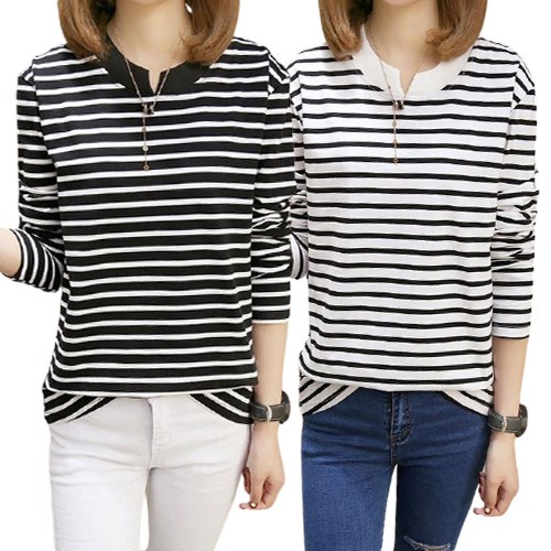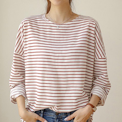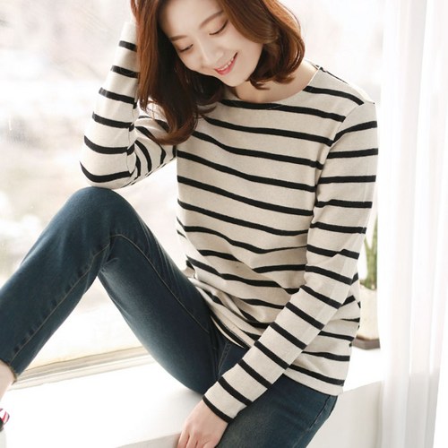 오키진 여성용 스트라이프 데일리 긴팔 티셔츠