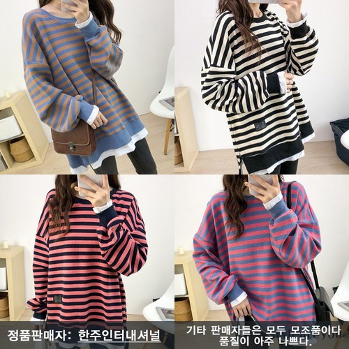 제이에프케이 배색 스트라이프 오버핏 단가라 빅사이즈 티셔츠 88까지! 긴팔